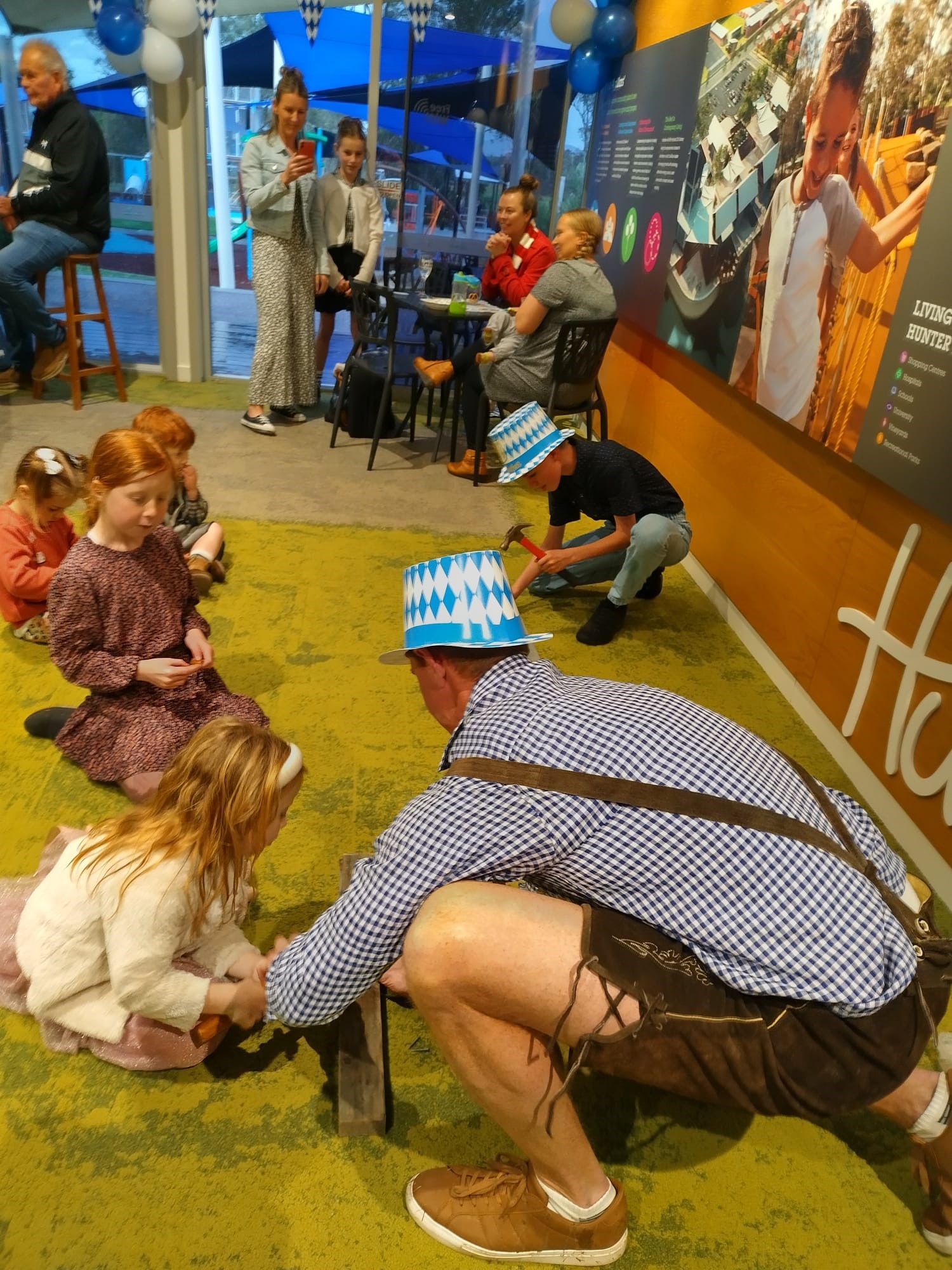 Although the rain pushed us inside it couldn't dampen our spirits. We danced Bavarian style with German music and enjoyed playing traditional German inspired games to boot. There were best-dressed prizes for Male and Female, as well as best dressed family to showcase our residents finest lederhosen - check out all the pics below!